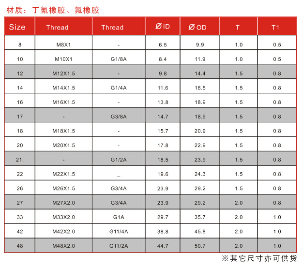 溫度范圍:丁晴橡膠-35℃~105℃,氟橡膠-35℃~200℃;